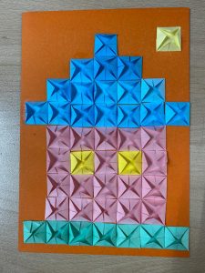 МОЗАИКА — это орнамент из повторяющихся деталей, заполняющий поверхность без зазоров и наложений. Обучающиеся 2 класса изготавливали модули оригами. Очень важное условие при изготовлении модулей для мозаики — они должны быть сложены из квадратов строго одинакового размера. Это нужно для того, чтобы, когда мы выкладываем мозаику, у нас не было щелей между модулями и модули не находили один на другой, а располагались только встык. Только соблюдая это правило получается ровная и красивая мозаика.