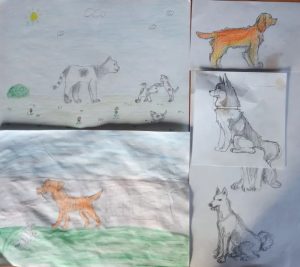 На этой неделе четвероклассники, при подготовке к работе над натюрмортом из предметов с разной фактурой, рисовали предметы из стекла (бутылку-скрипку). Пятиклассники делали зарисовки фигуры собаки по фото, а также используя пластиковую модель в качестве натуры для рисования. На занятиях: «резьба по дереву» вырезали скульптурную фигурку собаки.