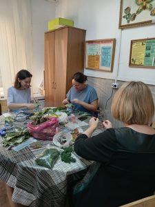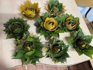 Осенние листья — роскошный природный материал для украшения интерьера, оформления праздничного стола и декора подарков. Творческая мастерская ДШИ занималась изготовлением цветов из листьев. После того, как они высохнут, будут составлены композиции с добавлением сухоцветов.