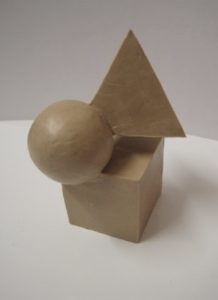 На этой неделе 3 класс на уроке «Скульптура» лепил геометрические тела: куб, шар, пирамида, конус и цилиндр, из которых были составлены геометрические пирамидки.